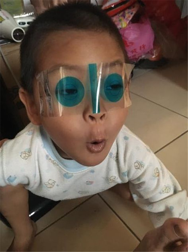 ▼有位陳姓網友在臉書「爆廢公社」上分享了一組兒子的搞怪照片,只見他把綠色的蟯蟲貼紙貼在雙眼,看上去就像帶了一副3D眼鏡,還有點忍者龜的既視感,原本要按壓在肛門上的貼紙,居然被兒子拿來貼眼睛,還做出各種鬼臉,爸爸看到很傻眼,忍不住驚呼:「我的鵝子啊~你怎麼…」