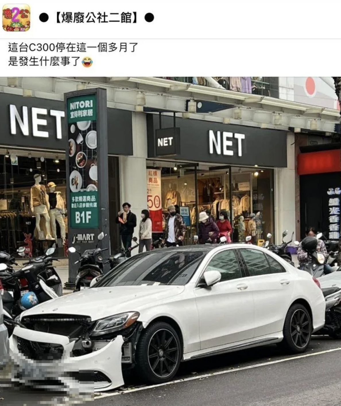 網友們看到後紛紛留言說:「也有可能車主還在醫院」、「壞了就不要了」、「一堆笑人沒錢的,但是人家有c300」、「修車比買車還貴」、「很明顯的前保桿掉了」、「放久就變C30000000」、「一個月長了雙下巴」、「停車費記得要繳」。