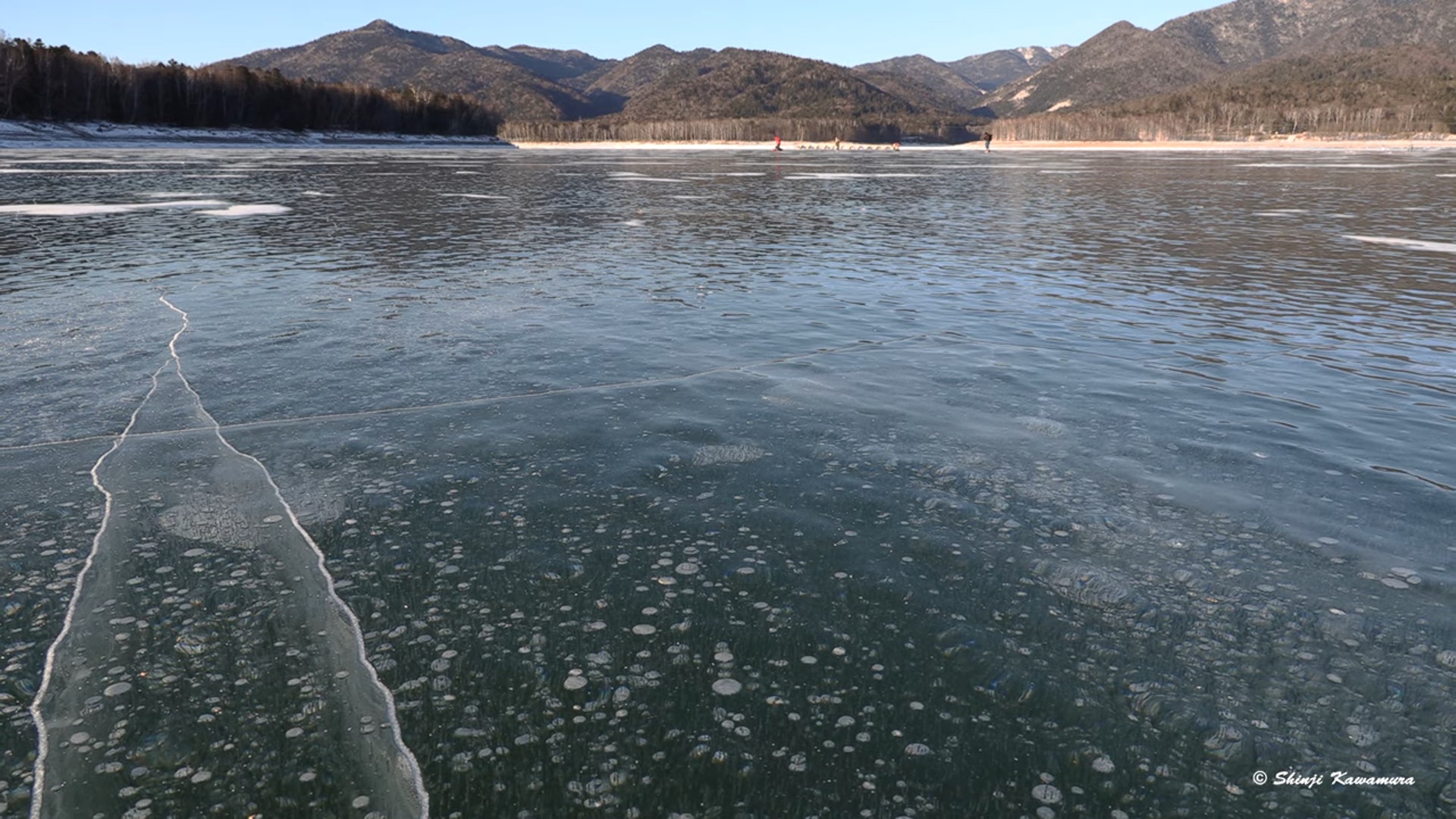 ▼冰凍的湖面為什麼會有泡泡?以經常發生這一現象的遠內多湖為例,這座湖位置特別,附近就有一座火山。 火山會在湖底湧出瓦斯氣體,但因為湖面結冰,這些氣體沒辦法浮出水面,就在水中慢慢結凍,形成了泡泡狀的結構。除了遠內多湖,北海道其他地方也出現過這樣的景象。