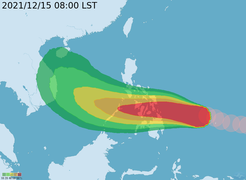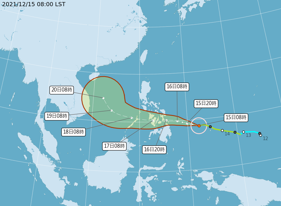 氣象局指出,目前雷伊颱風持續向西北西,朝菲律賓中南部群島移動,預估週末進入南海後,將會向北轉彎、可能接近台灣,並在北上的過程中逐漸減弱,短期內對台灣沒有直接影響。不過受其外圍水氣影響,20日、21日北部及東半部將有雨,中南部也會有零星降雨。