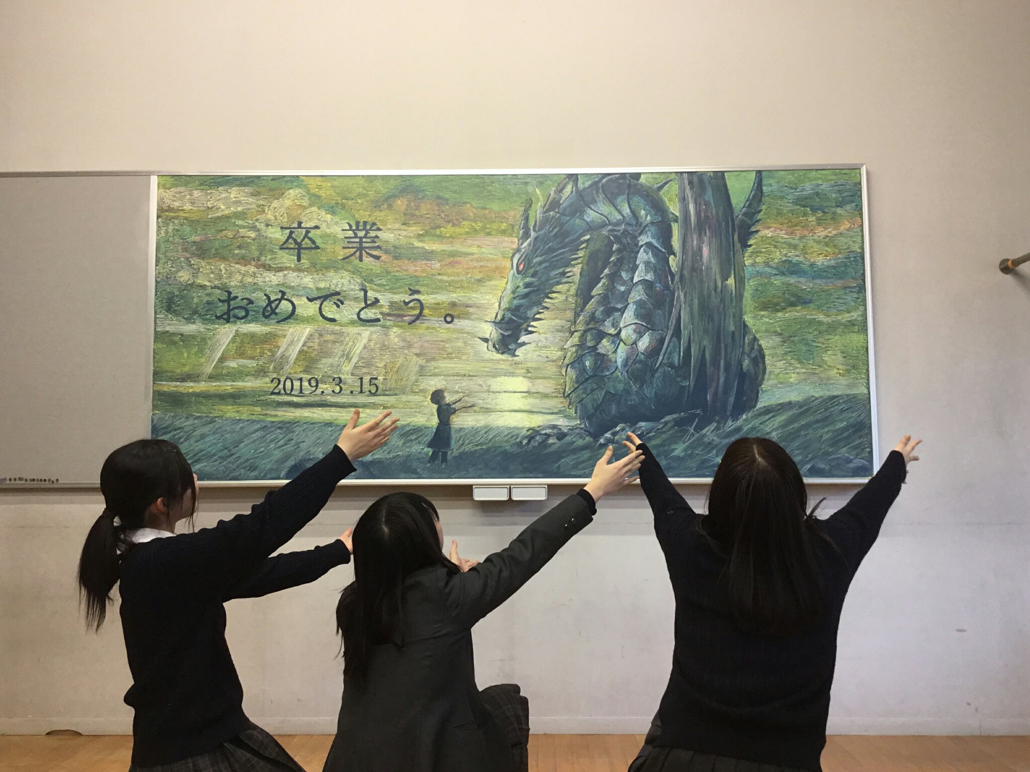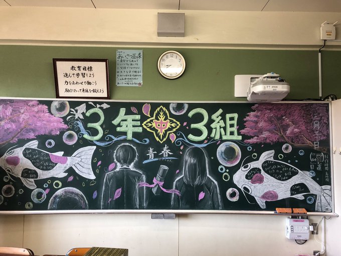 ▼日本一直都非常流行在黑板上創作畢業禮物的方式,之前也有學生分享了超強老師送給學生的畢業禮物,這些作品也同樣強得令人合不攏嘴!