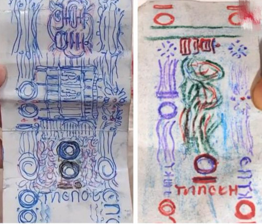 ▼這位街友爺爺餐風露宿,長年沒錢吃飯,便手繪紙鈔來買麵。他拿著自己手繪的紙鈔來買麵,麵店老闆立刻就發現那是一張張白紙,只是上面畫了鈔票的圖案。老闆看爺爺肚子餓,沒有說穿、只是默默收下,把麵賣給這位街友爺爺。