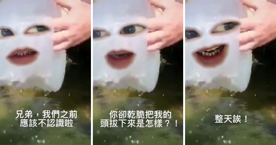 ▼在「水母被舉起而斷頭」的後製短片中,網紅「永和檳榔王」的配音讓人印象最深刻。後製加上惡搞的台語配音,再搭配水母無奈的表情,吸引了不少網友關注。