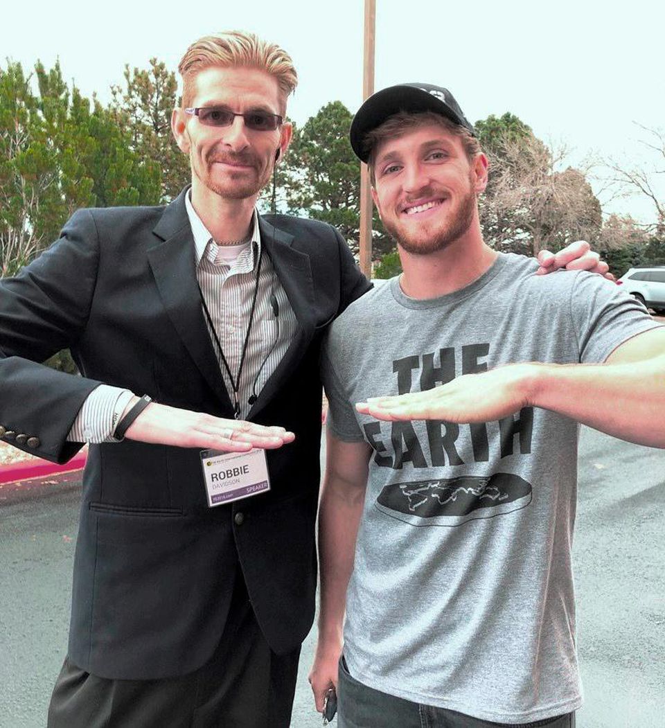▼美國YouTuber Logan Paul參加了地平論者在科羅拉多丹佛市舉辦的第2屆地平國際會議。他宣稱自己支持地平說:「我認為我是一個屬於真理的男人,一個討厭無知的男人,我想我並不恥於說出我的名字是Logan Paul,而我正在大膽說出自己的主張。」雖然他演講時像模像樣,但之後接受媒體採訪時卻努力忍住不笑場。他支持地平論顯然只是一個惡作劇,只是為了宣傳他拍攝的影片《平坦的地球:邊緣與背面》(Flat Earth: to the Edge and Back)。