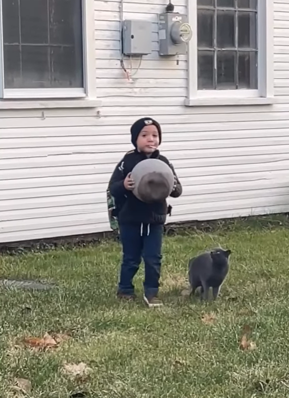 ▼Blue就像Owen的小保鑣、小保姆。Emily將這件事分享到網路上,說:「我真的不確定,但我覺得我兒子現在好像養了一隻貓!」