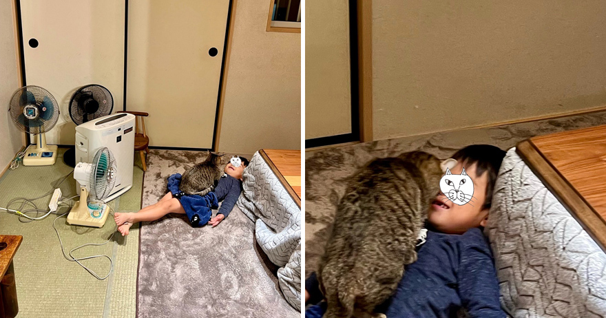 ▼推主經常在Twitter上分享兒子和貓咪的互動照片,吸引了不少粉絲追蹤。貓咪乖巧可愛,尤其喜歡跟小主人待在一起,萌娃和可愛毛孩的互動超治癒。