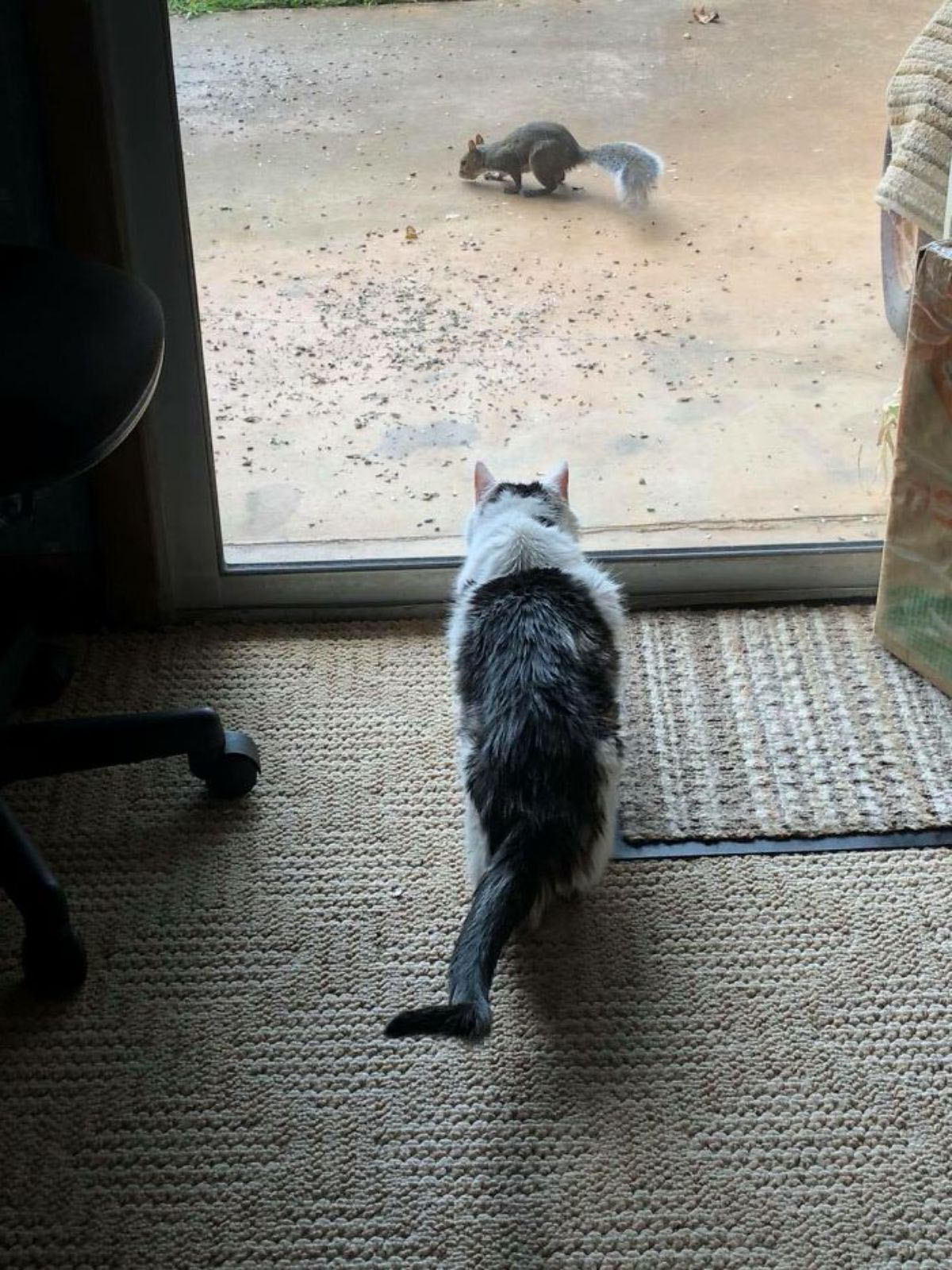▼Penny和Gus一見如故,Gus被接回家後很快就適應了新環境,每天吃得好、睡得飽。牠平時最喜歡做的事,就是坐在門口看外面的松鼠玩耍。