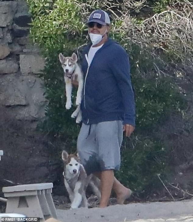 ▼去年時,李奧納多和女友卡蜜拉(Camila Morrone)領養了2隻哈士奇,分別取名為Jack和Jill,後來他們又養了第3隻狗狗。狗狗們平時都住在加州,從來沒見過冰湖。拍攝《千萬別抬頭》期間,李奧納多帶Jack和Jill來到片場,牠們竟然跳進了冰湖裡。