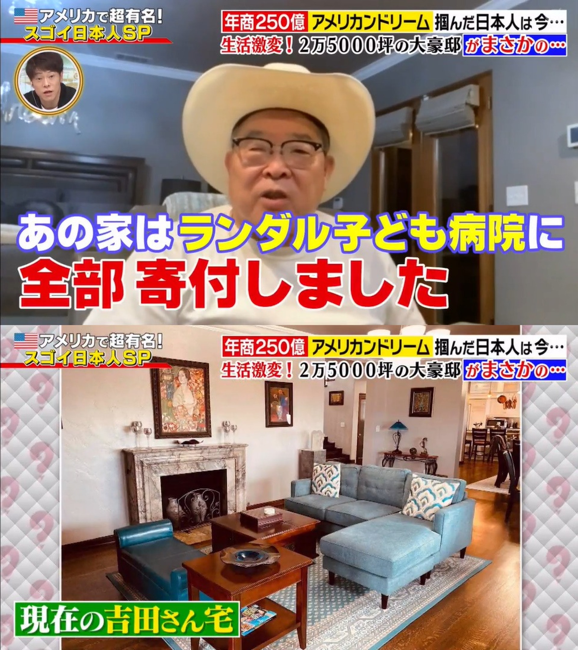 ▼最近節目組再次採訪吉田,今年70歲的他已經把自己的豪宅還有土地捐給當地兒童醫院,雖然他也很捨不得,但他覺得能夠幫助那麼多人很值得。