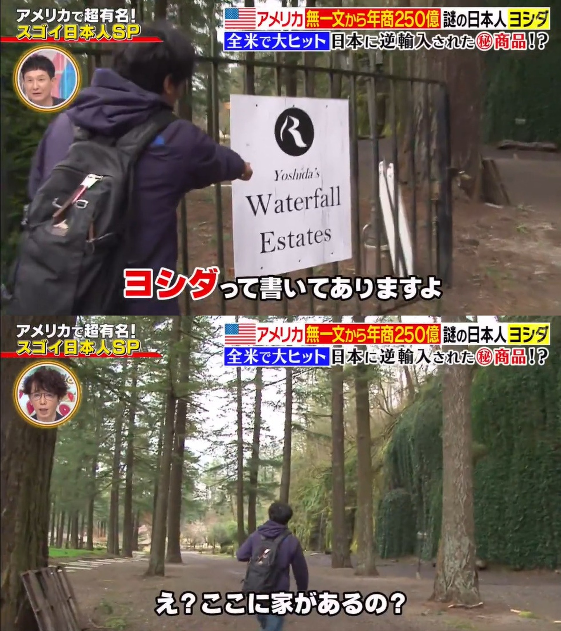 ▼吉田的本名是吉田潤喜,他是當地有名的富豪,居住的豪宅前有一片樹林,節目組前去採訪時走了好久才來到大門前。