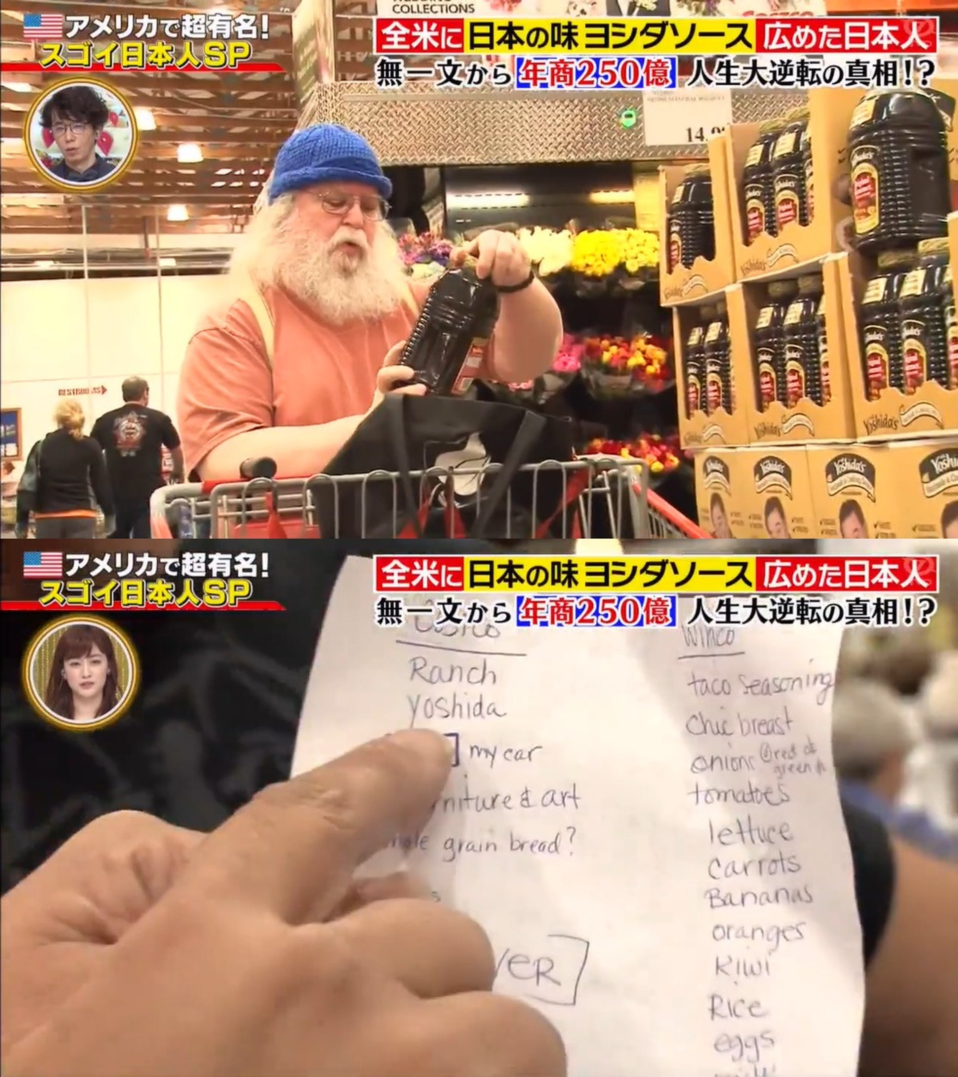 ▼吉田的成功跟「yoshida燒烤汁」有關,這種醬汁在美國很受歡迎,節目組採訪時路人的購物清單上就有它的名字。