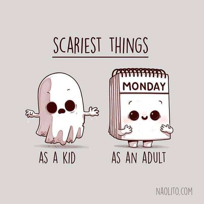▼2. 小時候最怕的是鬼VS長大後最怕的是星期一
