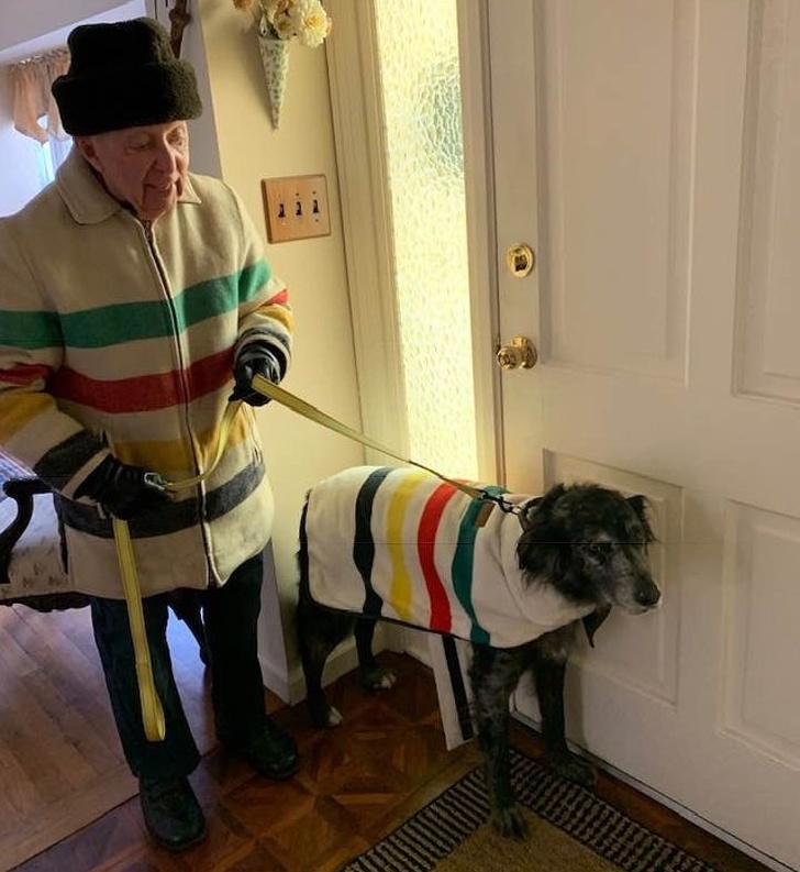 ▼​16.爺爺和他的愛犬穿著同款外套。
