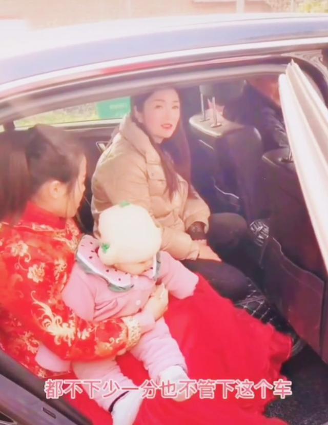▼新郎的親友紛紛勸說新娘下車,還有人說:「要不我叫你婆婆過來!」但新娘不願意下車,旁邊的伴娘也說:「叫誰都不下!」雙方陷入僵局。後來新郎的媽媽也過來勸說新娘,但新娘還是沒有妥協,抱著孩子哭著說:「這婚不結了,走,開車回家!」