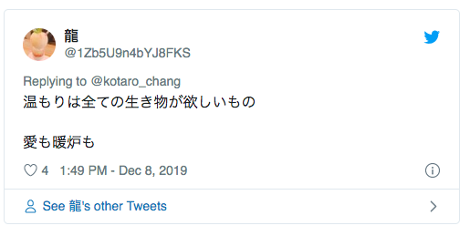 — こたろうくん (@kotaro_chang) December 7, 2019