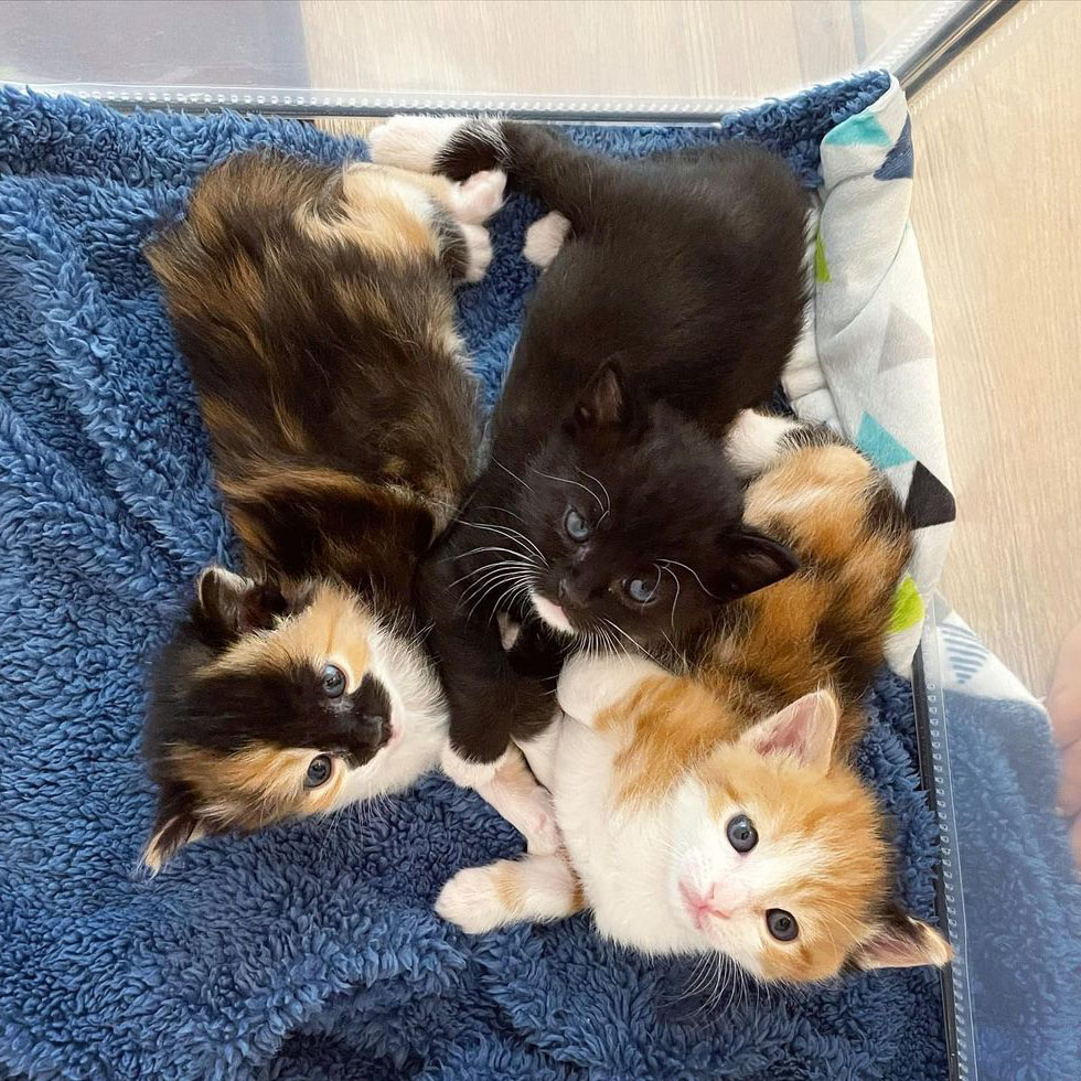 2021年12月29日不久前,洛杉磯動物救援組織「Baby Kitten Rescue」的創始人Caroline Grace接獲通報,表示有一窩3隻小奶貓需要緊急救援。收容所無法給牠們提供所需的治療和照護,只能尋求幫助。這3隻小貓身體虛弱,毛髮髒兮兮的,身上還有跳蚤,讓人看得非常揪心。
