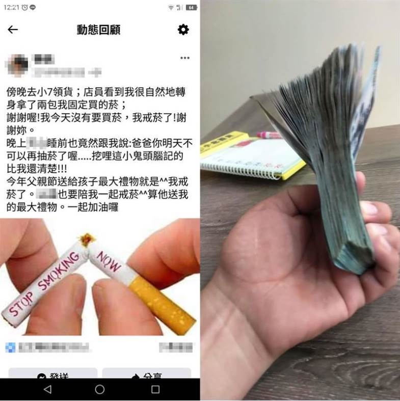 沒有更棒的禮物!答應孩戒菸滿一年 他曬「鈔票鋪滿桌」:省了超多!