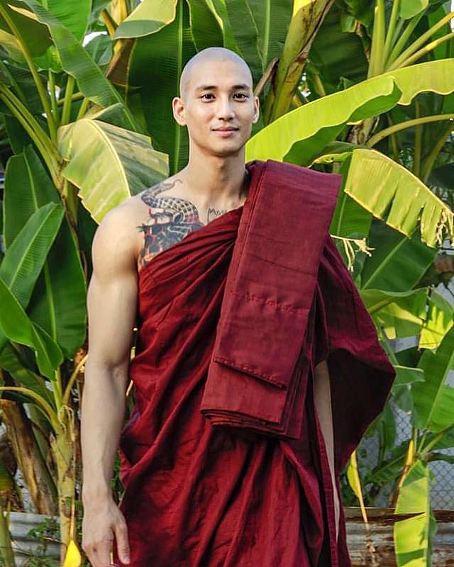 ▼有一段時間Paing Takho剪掉長髮,短期出家。他穿著袈裟的和尚照流出後,大家都覺得非常驚艷,一致認為他是「世上最型的和尚」。