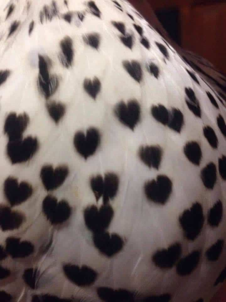 2023年06月11日很多動物身上會有逗趣的色塊形狀,如果恰巧是心形,那真是萌得不得了~最近一隻母雞在網路上走紅,牠全身的羽毛都是白色上,上面還點綴著黑色的心形圖案。那大大小小的愛心就像設計好的一般,讓人看了忍不住露出笑容。