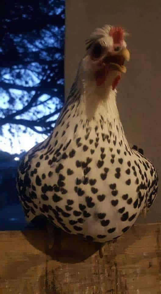 ▼現在大家養的寵物越來越多元,養雞當寵物也不是稀奇事。這隻母雞就被主人照顧得非常好,牠全身的羽毛乾淨、整潔,白色羽毛上的一個個黑色愛心看起來格外顯眼,讓人忍不住驚嘆:「世界上怎麼會有這麼漂亮的母雞!」