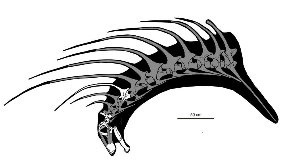 ▼專家表示,這次發現的化石是現存的叉龍科遺骨中保存得最好的。如果這種恐龍脖子上的尖刺是裸骨結構或僅包裹著一層薄皮層,那麼在跟其他動物打鬥的過程中很容易就會斷裂。這些奇特尖刺很可能是被角蛋白覆蓋,就像一些動物的犄角一樣。還有理論認為,這些尖刺有調節體溫的作用。