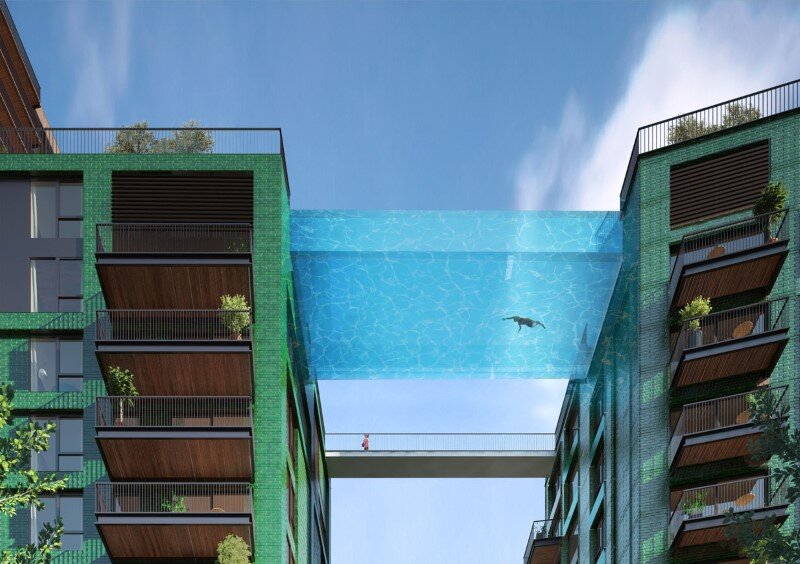 2022年01月03日倫敦西南部九榆樹區(Nine Elms)的「大使花園」(Embassy Gardens)建案有一座「天空泳池」(The Sky Pool)。這是全世界第一個懸吊於兩棟公寓大樓之間的透明空中泳池,距地面足足有35公尺。天空泳池啟用時就曾引發話題,最近這座泳池的管理費用再次引發討論~