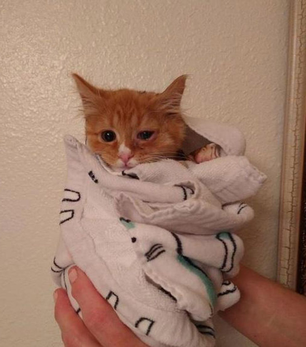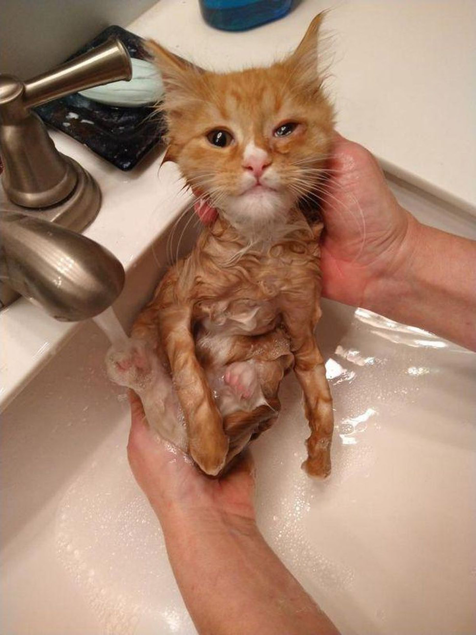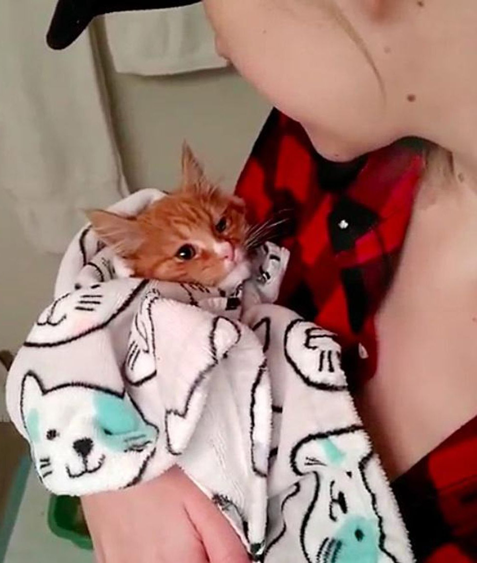 ▼Alexa給Spruce洗溫水澡,還治好了牠的眼睛問題。平時她會抱著這隻可愛的小貓,Spruce也漸漸愛上了被人擁抱、愛撫的感覺。