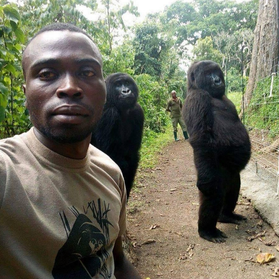 2022年01月08日剛果維龍加國家公園(Virunga National Park)裡有一隻大猩猩Ndakasi,牠被稱為全球最會自拍的大猩猩。2007年時,剛剛2個月大的牠在熱帶雨林中被護林員發現,緊靠在已經死去的大猩猩媽媽身邊,於是護林員將牠送到了救護中心。當晚保育員Andre Bauma第一次跟Ndakasi見面。