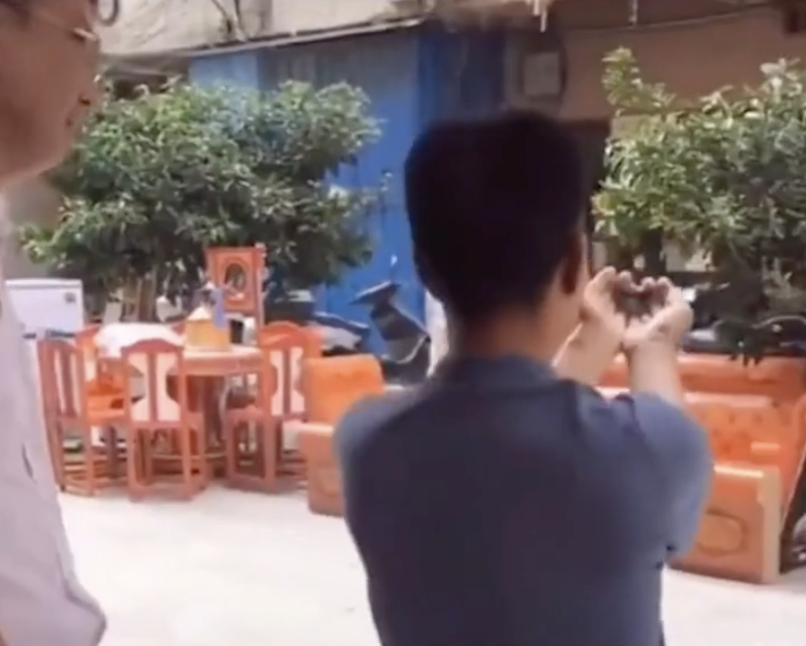 ▼爸爸輕輕伸出手,想要幫兒子取走蝴蝶,兒子哭著擺手拒絕了。後來爸爸還是雙手捧起蝴蝶,走到院子中間說:「放心去吧。」蝴蝶在爸爸頭頂飛了一圈,這才飛走。