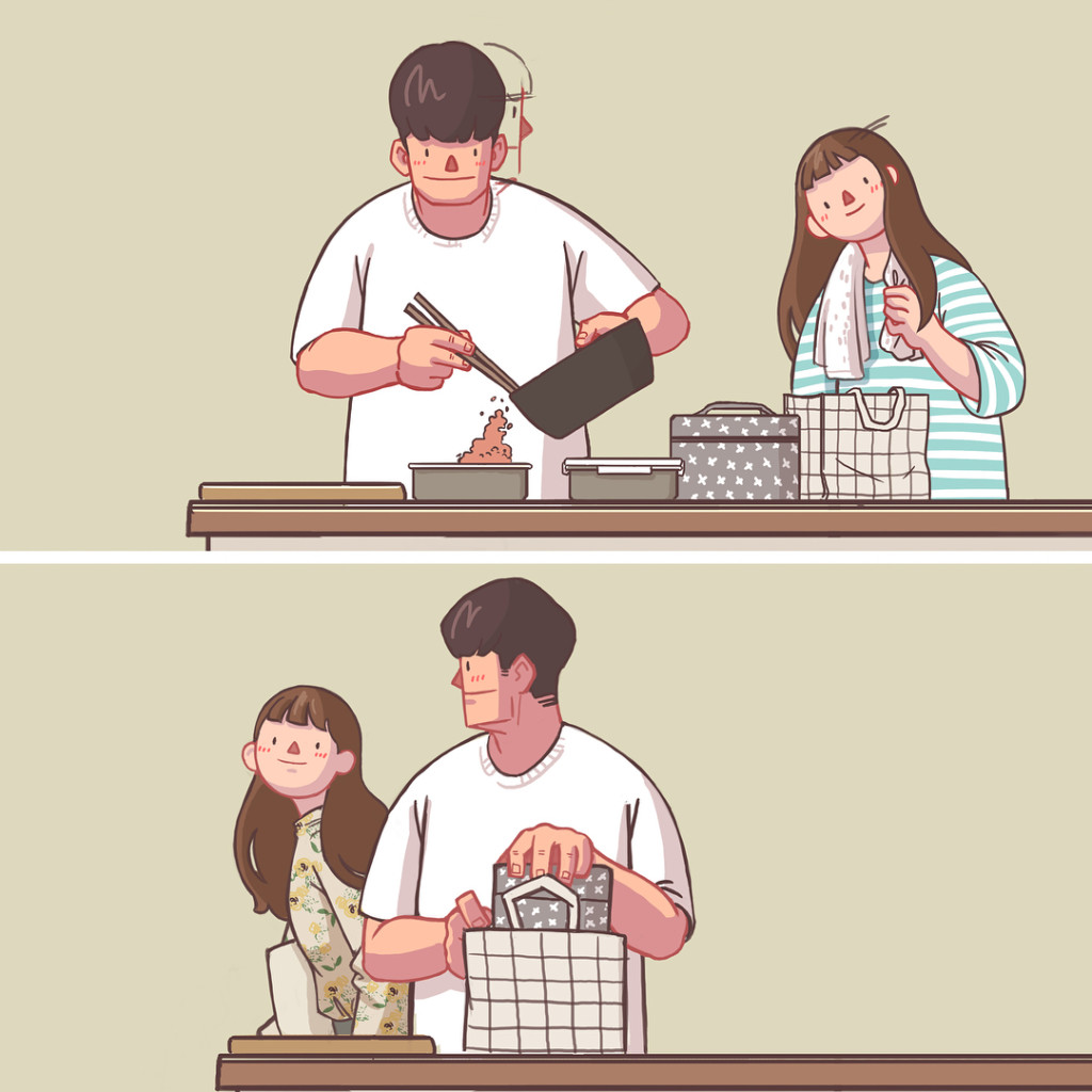 2022年01月08日愛情不一定轟轟烈烈,平平淡淡也很美好。韓國插畫家Kyu-Young將自己與女友相處的點點滴滴畫了出來。雖然他畫的都是一些平凡、簡單的小事,卻讓人覺得非常溫馨。這樣的甜蜜日常讓人好羨慕。