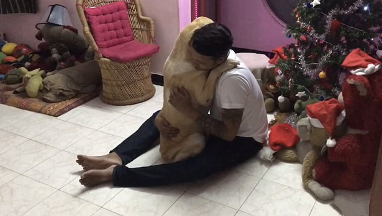 ▼Jack Daniel的手術非常成功,但牠還是需要一個大大的擁抱。只見牠把前爪搭在主人的雙肩上,就像一個受了委屈、想從把拔那裡尋求安慰的小孩一樣。主人也很心疼牠,一邊撫摸牠的背,一邊親吻牠的頭,好像在說:「不要怕,你很快就會好的。」