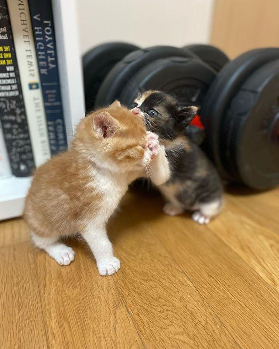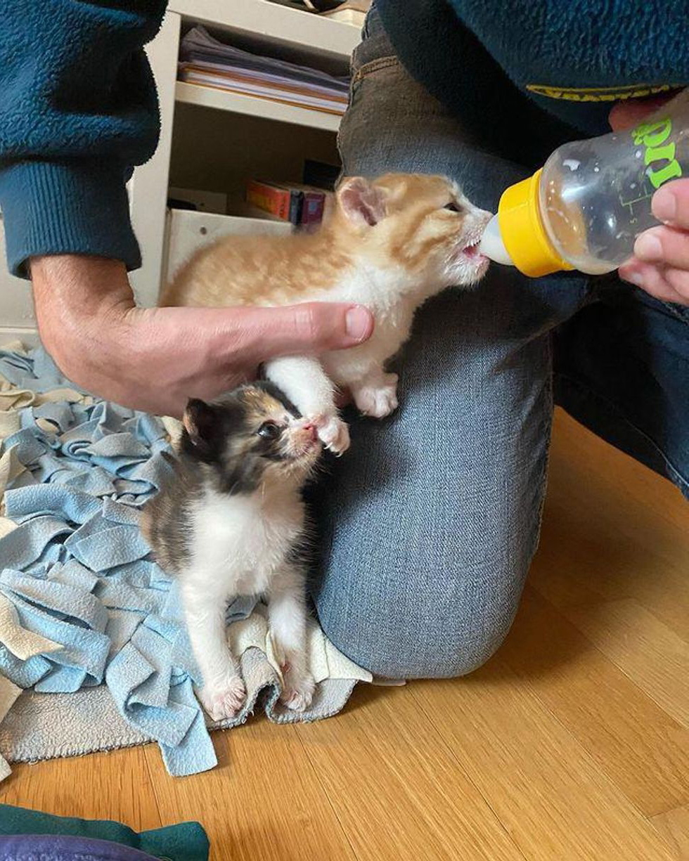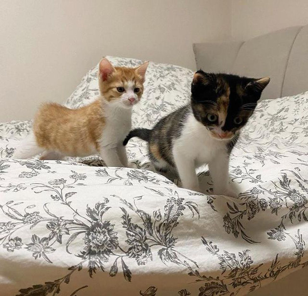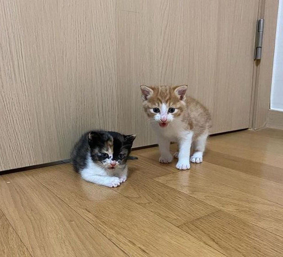 2022年01月13日不久前,有人在一條繁忙的道路旁發現了2隻小浪貓。牠們躲在灌木叢裡,身邊沒有母貓陪伴。救援人員趕到現場時,發現那是一隻小橘貓和一隻三花貓。路邊有一些好心人留下的食物,但貓咪們剛剛出生不久,還不能吃那些東西,牠們應該餓肚子很長時間了。