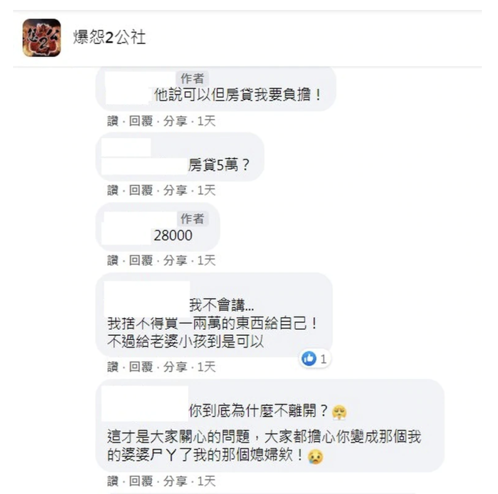 網友們看到這些事都非常傻眼,紛紛表示:「關於婚姻的事,我一律建議離婚」、「你老公的問題也很大」、「6000可以幹嘛」。這樣的婚姻好可怕…
