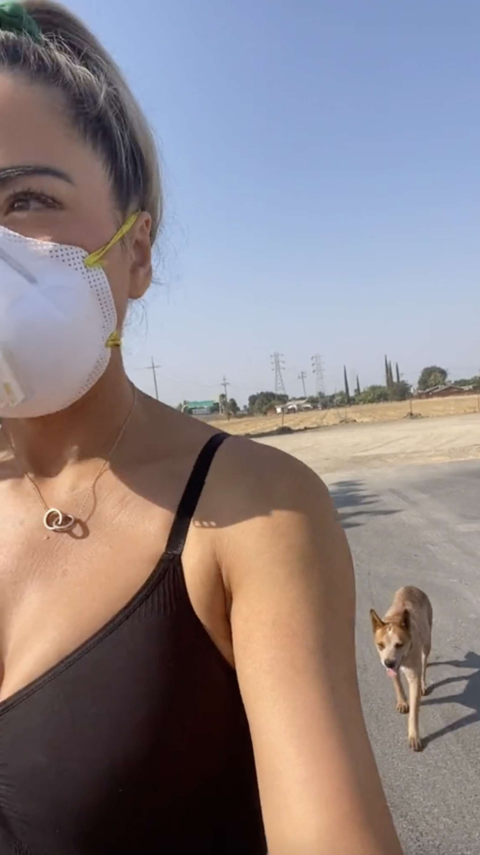 ▼Leilani敲車窗示意老公看那隻狗狗,那隻狗狗一直跟著他們,不願意離開。Leilani詢問加油站的工作人員,這才知道那隻狗狗是被前任飼主留在這裡的,已經在這裡住了一段時間了。Leilani和老公對狗狗的遭遇感到很不捨,決定帶著牠一起走,並給牠取名為Kaia。
