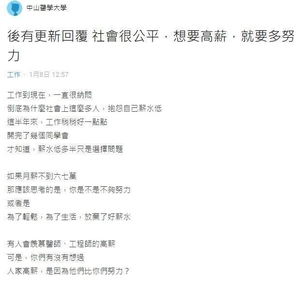 薪水沒有6萬「是你不夠努力」! 外科醫稱「台灣社會很公平」發文嗆:低薪先怪自己