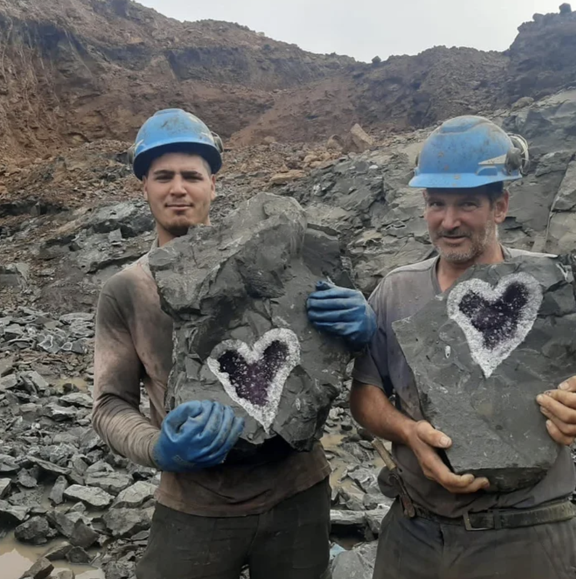 好浪漫! 紫水晶礦工「挖出一對愛心」 神秘「紫羅蘭晶洞」讓人一眼愛上♡