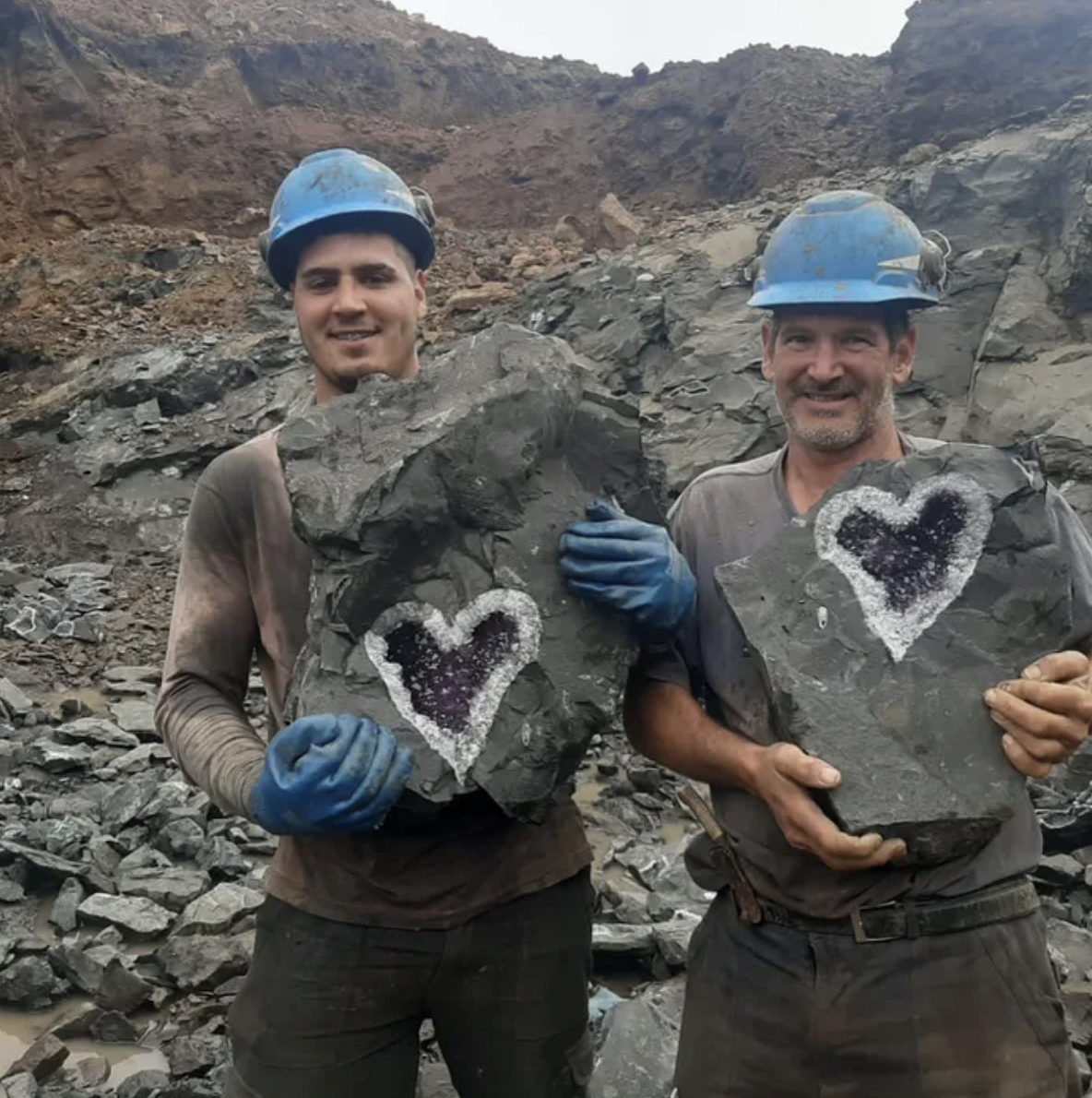 2022年01月12日我們平時在商店裡看到的紫水晶,都是經過人工精心磨製,才呈現出各種各樣的美麗形狀,有時自然開採出來的水晶形狀也很精美。最近烏拉圭的礦工們就發現了一個小型的純天然心形紫水晶晶洞。他們切開岩石後看到這精巧的圖案,感覺非常驚喜~
