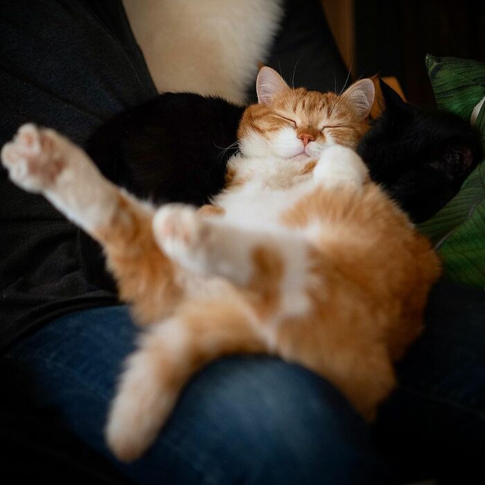 ▼Ginger在新家過得很幸福,牠還有一隻黑貓夥伴,牠們很快就成為了最好的朋友。主人說:「Ginger非常可愛,喜歡和人類待在一起。牠好像知道如何享受生活,因為牠的表情一直都非常愜意。」