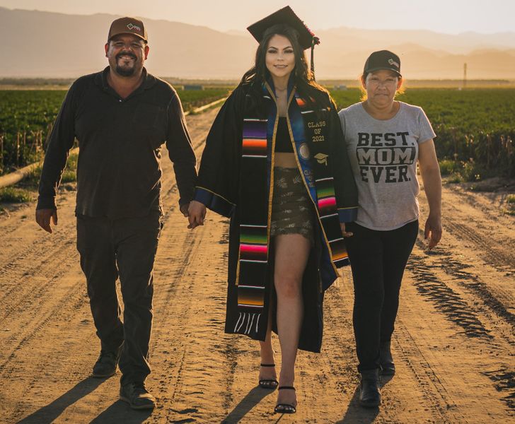 2022年01月17日美國加州大學聖地牙哥分校有一名女大生Jennifer Rocha,她來自一個墨西哥裔家庭。最近Jennifer畢業,順利拿到社會學學位,她決定在父母工作的農田拍攝畢業照,感謝父母的辛苦付出。這組特別的畢業照被po到學校的臉書上,很快就引發網友熱議~