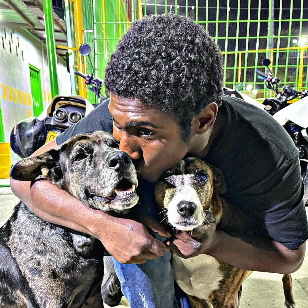 2022年01月19日日前哥倫比亞布卡拉曼加(Bucaramanga)的一位民眾在公園中看到了感人的一幕。只見一位街友Choco帶著2隻狗狗坐在台階上,Choco還拿出一個蛋糕並點上蠟燭。原來他為自己的狗狗舉辦了一場溫馨的生日派對~