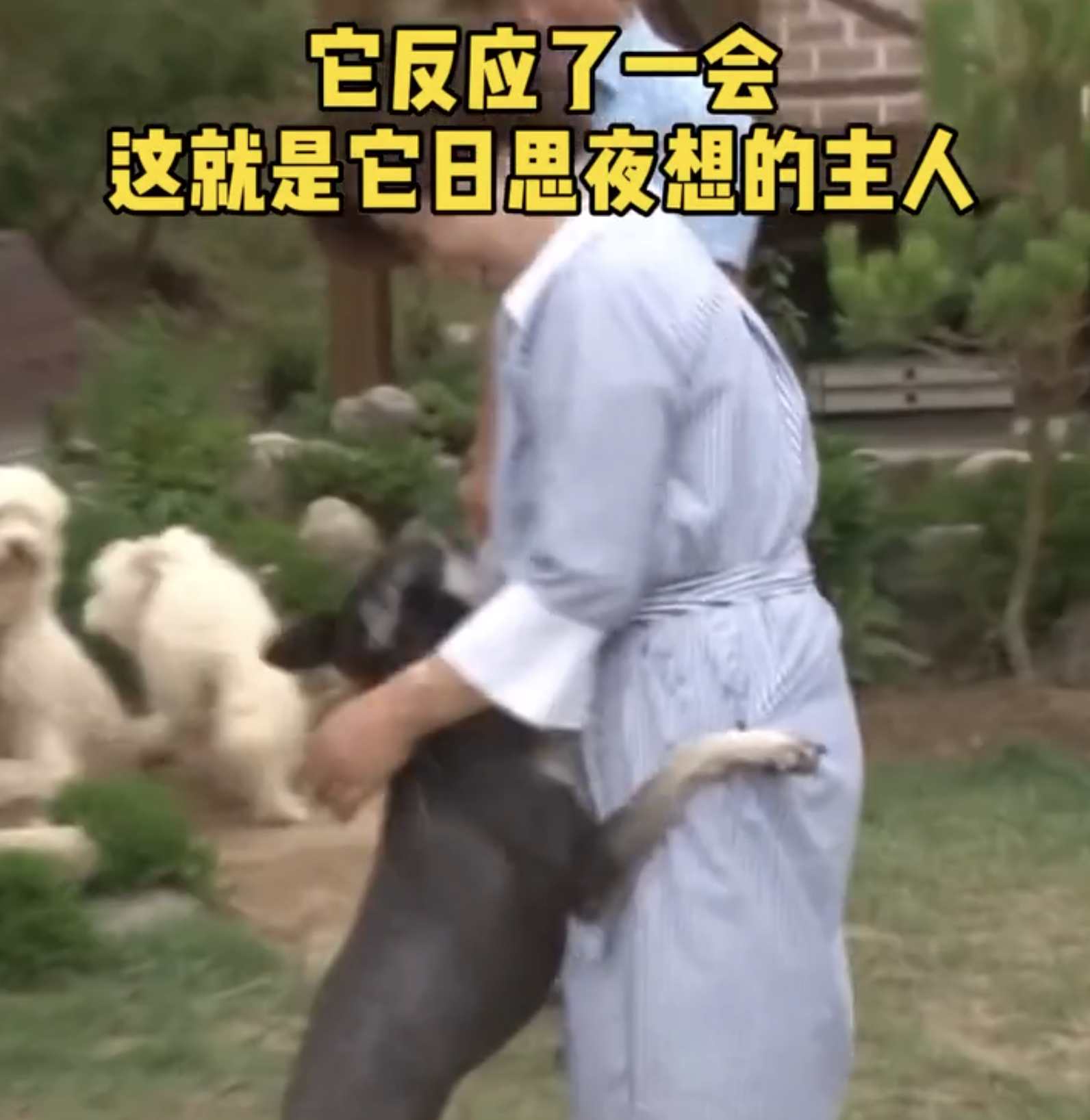▼狗狗已經走失1年,剛剛回家時非常緊張,把拔過來給牠摸摸,牠沒有認出對方,全程表現得很謹慎。後來馬麻過來摸了摸牠,牠反應了一會兒,才認出這是自己日思夜想的主人,立刻激動地跳到了主人懷裡。