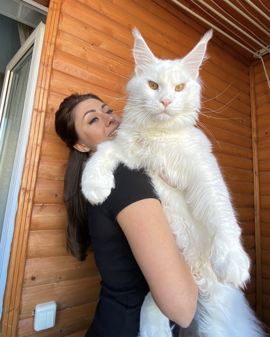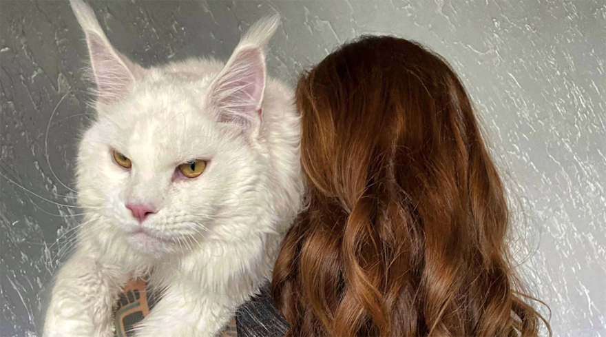 2022年01月20日2年前,俄羅斯舊奧斯科爾(Oskol)女子Yulia Minina養了一隻漂亮的白貓Kefirgrew。剛開始Kefirgrew的體型很正常,但在過去的幾個月裡,牠竟然越長越大,基本上已經和中型犬差不多大了。Yulia也被自家愛貓的體型嚇了一跳:「我一直以為自己養的是一隻普通的貓咪,沒想到牠會長這麼大。」
