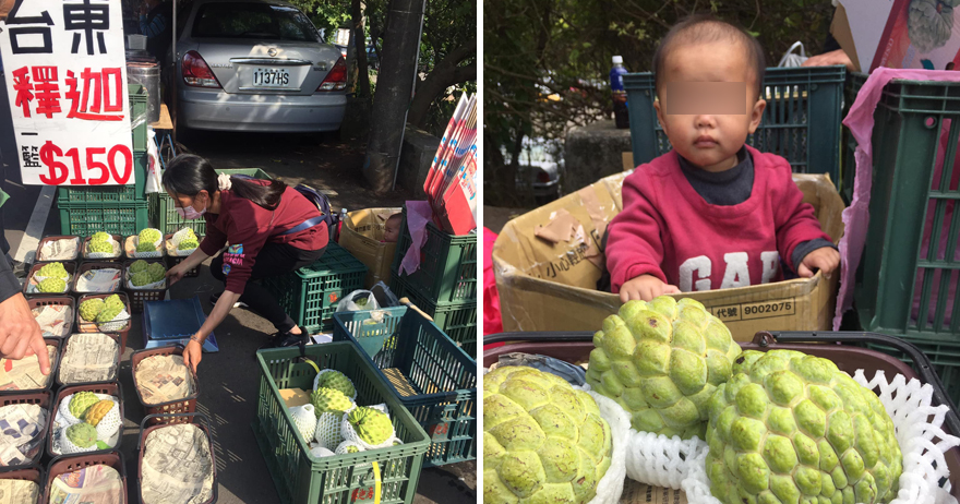 ▼李柏瑟16日在臉書粉專發文說:「今天上虎頭山,關心疫情下的路邊攤,生意好不好?看到其中有一攤賣釋迦的媽媽,旁邊有一個箱子,裡面有一位可愛的小baby,這位辛苦的媽媽一邊做生意,一邊還要照顧幼小的孩子。看到這一幕,真的很心酸很難過~我馬上買了2箱釋迦!」