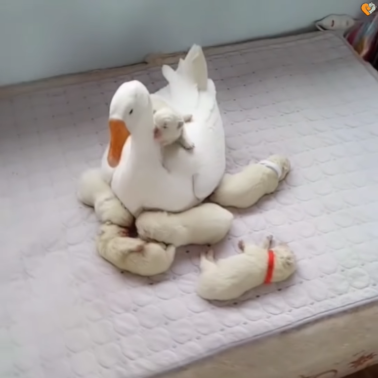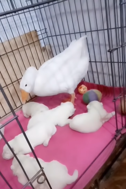 ▼平時飼主經常拍攝家中寵物們的日常,七寶幫助漠漠照顧小奶狗的畫面也被網友們看到,大家都覺得很萌,紛紛留言說:「媽媽一定很信任鵝鵝,才會讓牠帶小孩」、「太有愛了,鵝鵝跟汪們真的是一家人」、「鵝鵝:我當阿姨了!」。