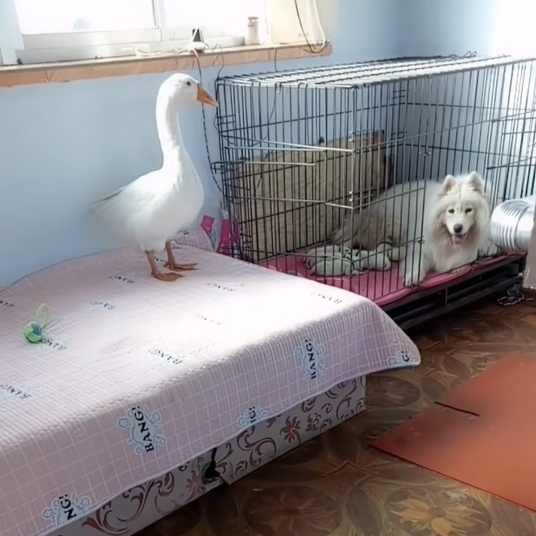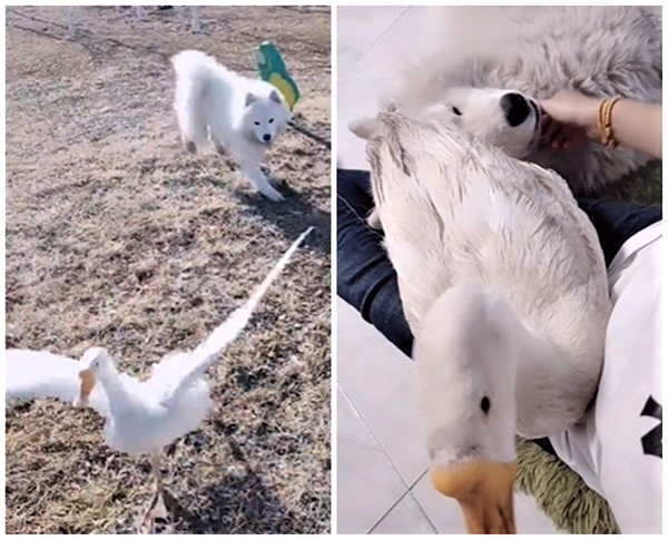 2023年07月02日大白鵝總是給人很兇的印象,就連人類都不是牠們的對手。但下面這隻大白鵝卻非常溫柔,牠跟家中的薩摩耶是好朋友,看到薩摩耶照顧小孩太累,竟主動過去當保姆幫忙。大白鵝照顧小奶狗的畫面太溫馨啦~