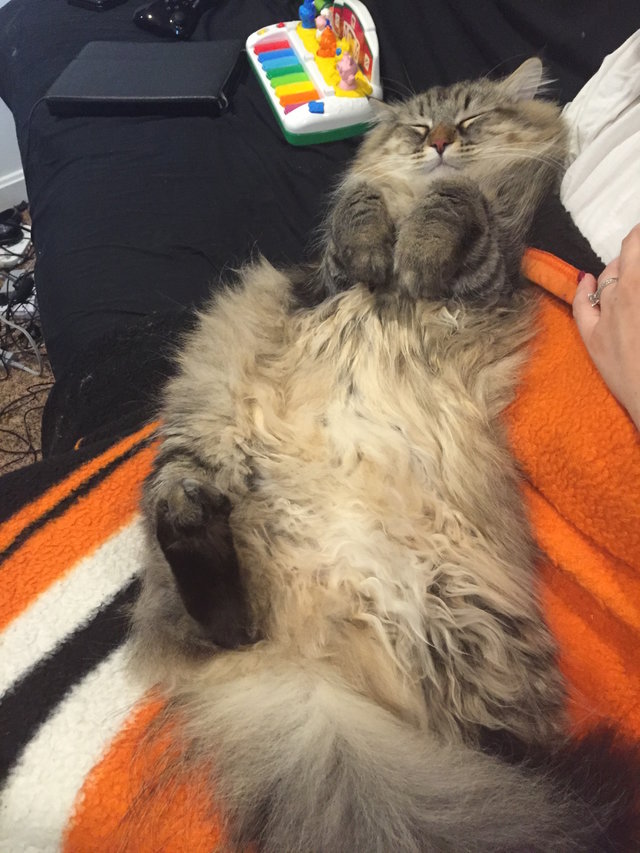 ▼Max會對男主人撒嬌、討摸摸,還會蜷縮在他胸口睡覺。面對照顧牠更多的Lisa,反而毫無表示,還有點嫌人。自己養的貓,高冷也沒辦法,Lisa努力了好久都沒有得到Max的芳心,也就認了。