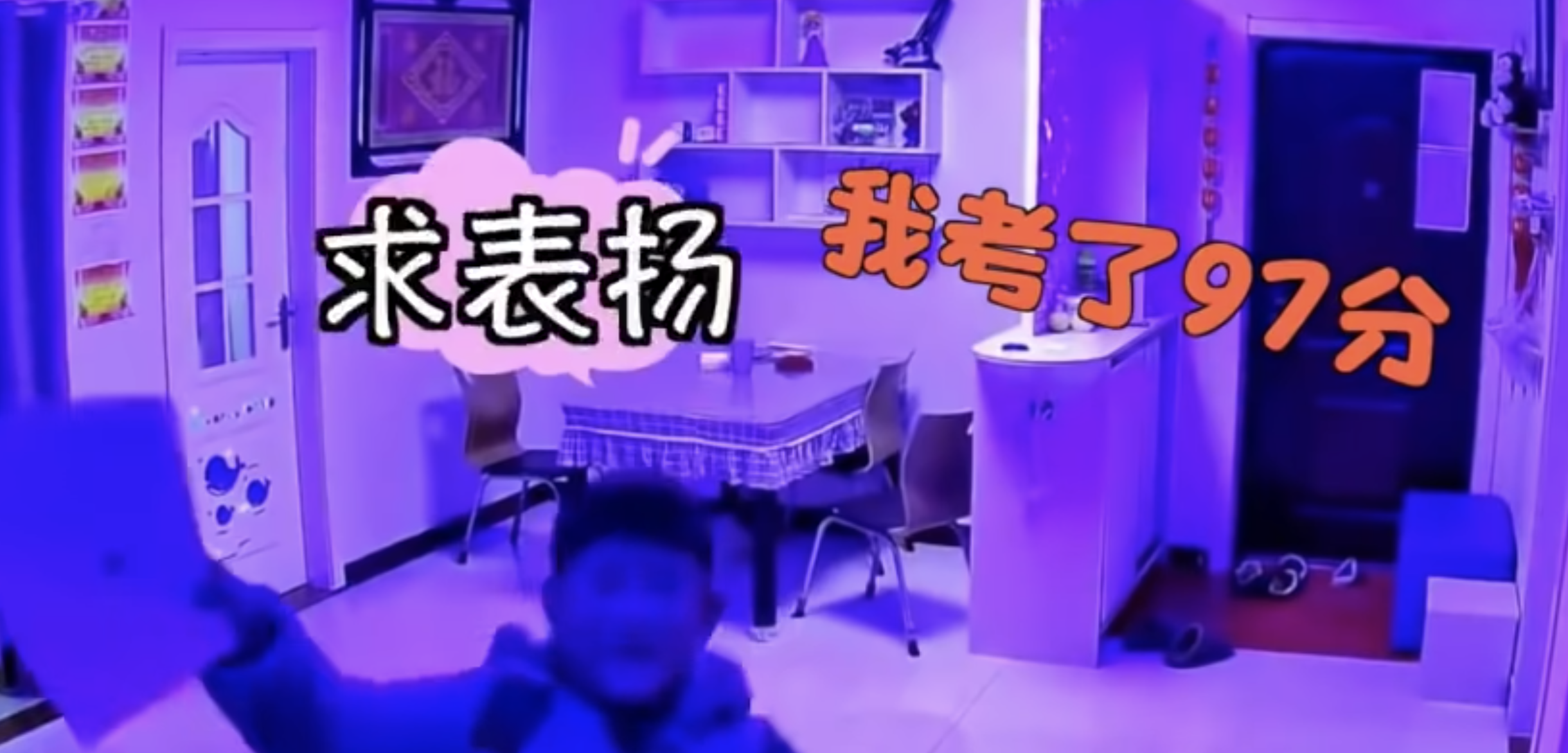 2023年07月02日小朋友都想獲得家長的稱讚。江蘇連雲港市海州區有一名叫叮噹(化名)的小學一年級男孩,日前他在學校考試中取得好成績,回家後開心對著監視器鏡頭報喜:「媽媽,我考了97分!」但他沒有得到回應,最後在一片寂靜中默默坐到桌子邊寫作業。叮噹那落寞的背影讓人非常不忍。