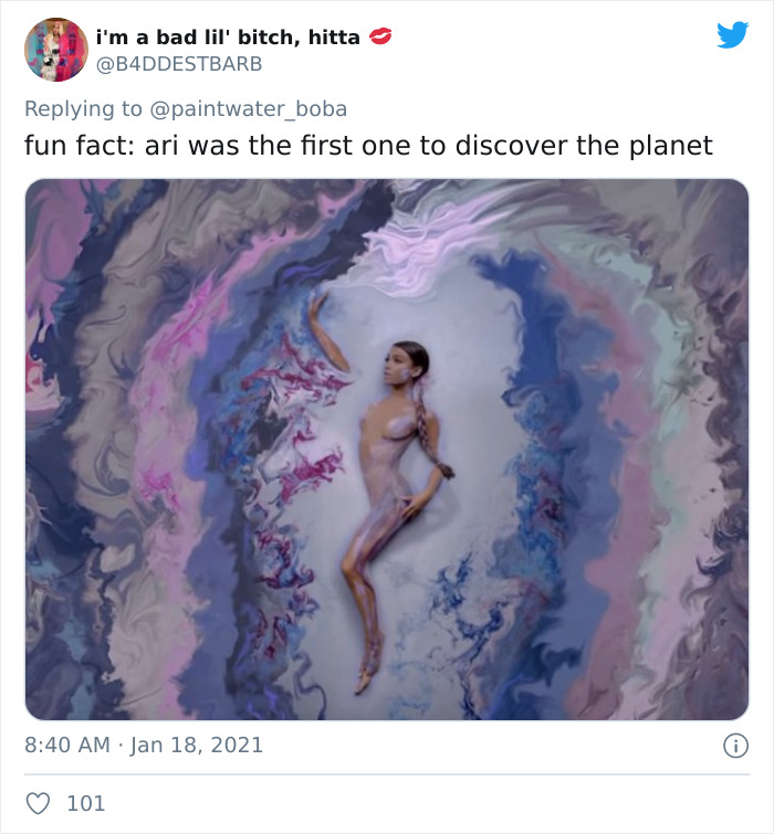 ▼網友們紛紛開玩笑說,流行天后Ariana Grande才是第一個發現這顆行星的人,因為這顆行星的色彩元素早就被用起來了: