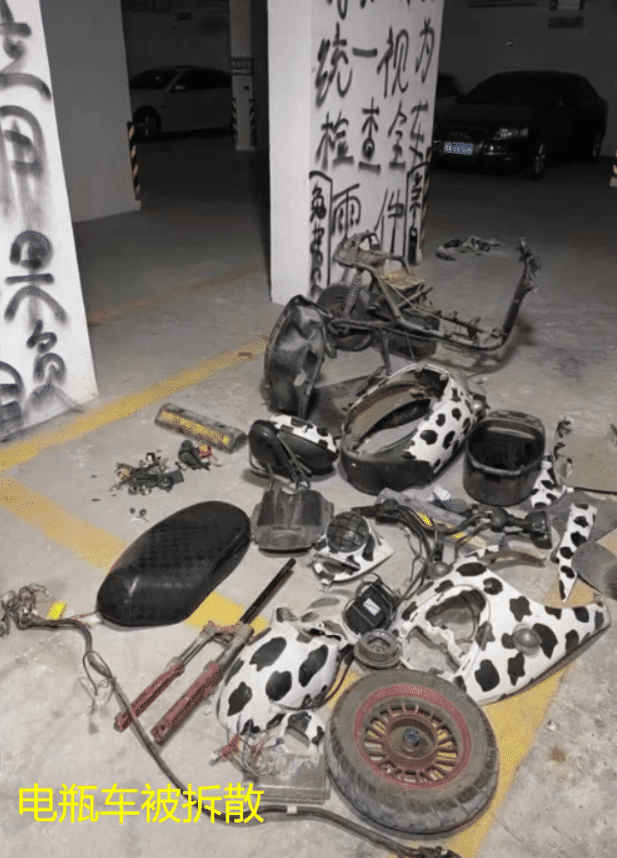 2022年01月26日自家的停車位被霸佔,真的非常火大!四川成都某社區的一名住戶回家時,發現自家的車位上停著一輛電動機車,還在他的車位上偷偷充電。他在社區的網路社群群組內發公告,請車主快點開走。沒想到第二天早上,那輛電動機車還停在原地充電。他一氣之下拿了整套工具,將那輛電動機車拆成了零件。