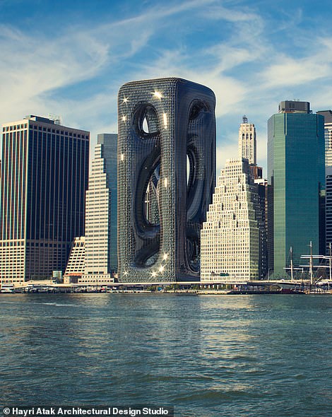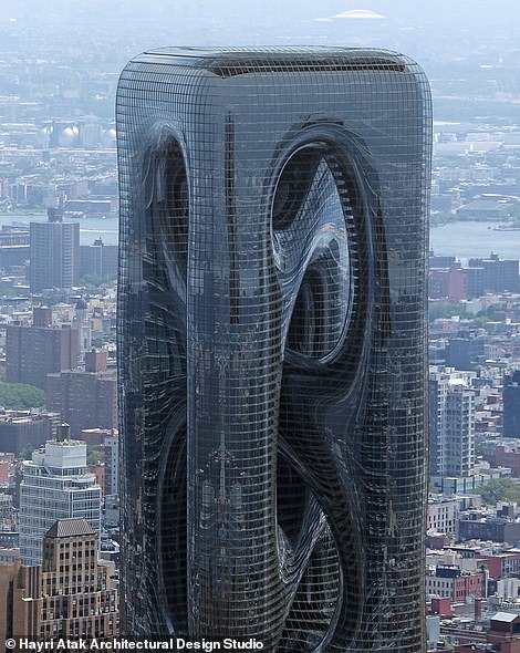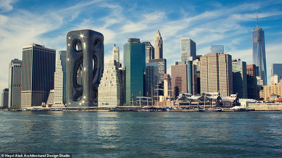 2022年01月26日世界上有很多風格獨特的建築,土耳其建築事務所Hayri Atak就提出要在紐約曼哈頓(Manhattan)設計一棟概念建築。這棟建築有210公尺高,遠遠看去就像流動的液體,整體的結構跟普通的建築差別很大,在周圍的大樓中顯得格格不入。